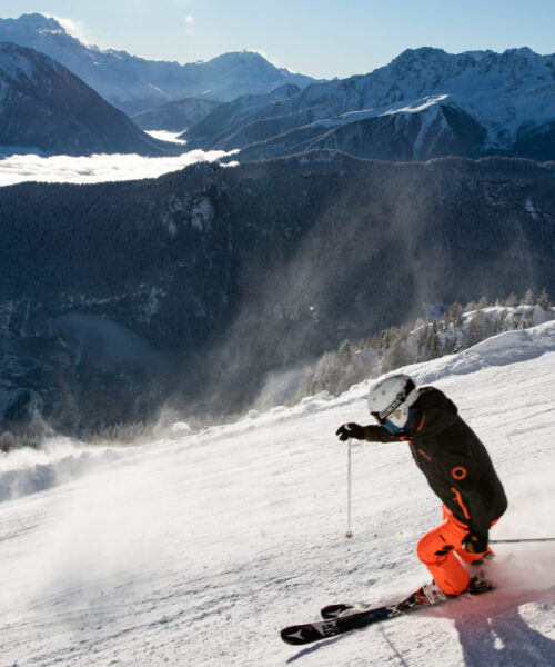 The ski area of Les Marécottes, located between Martigny and Chamonix, enjoys 100% natural snow cover and a spectacular view of the Valais Alps and the Mont Blanc massif. The slopes are designed to make every skier feel at ease.