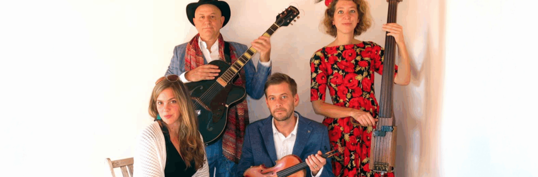 The Fish Market quartet invites audiences on a vibrant musical journey to the crossroads of cultures. Led by British accordionist Faith Elliott-Ristic, a respected figure in Serbian Roma music, the ensemble brings together artists from a wide range of backgrounds: Viljo Busch (violin), a Swiss-Swedish musician, Frank Powlesland (guitar and banjo), originally from England, and Léa Rovero (bass), a musician from Neuchâtel.