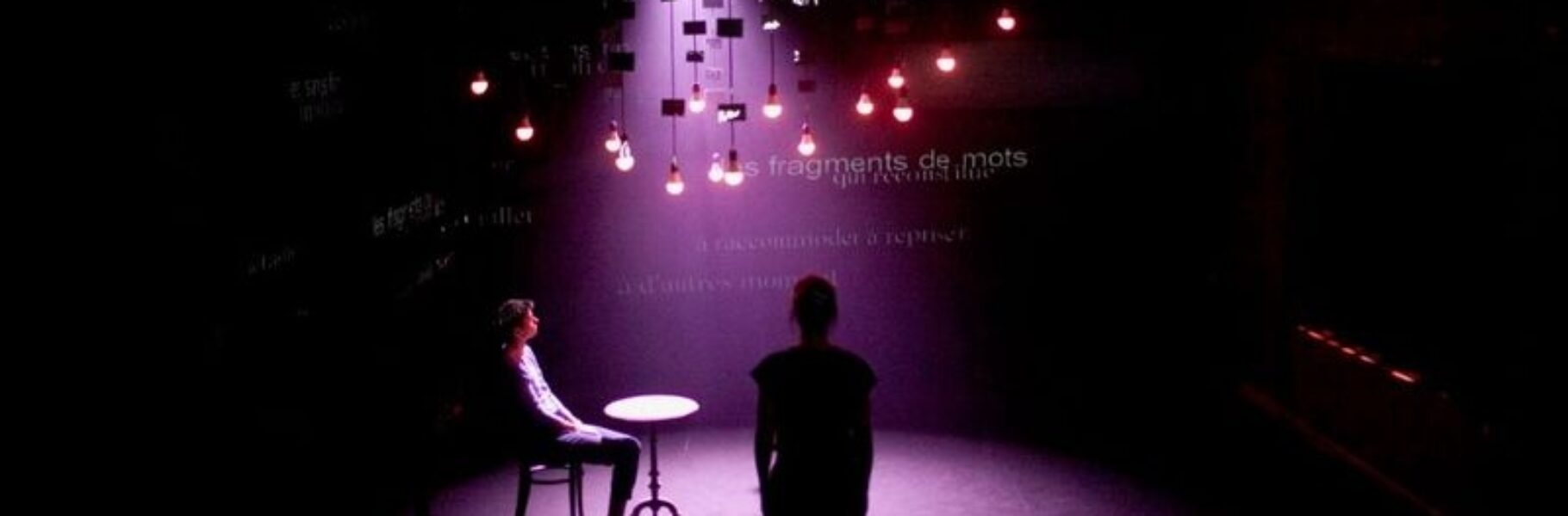 The texts, taken from word-for-word interviews, explore the experiences of two people confronted with a sensory fog: one is gradually losing her sight, the other has never heard.